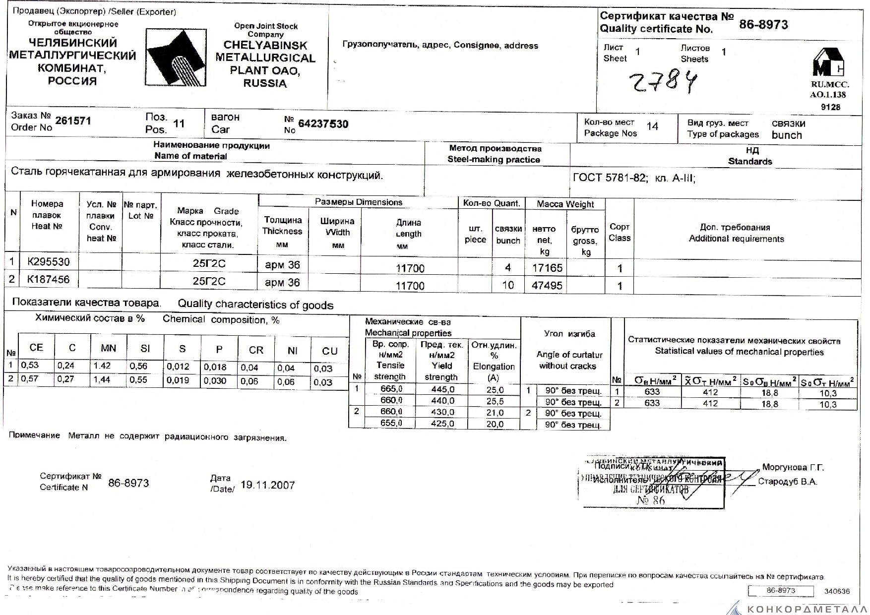 С каждой товарной позицией мы предоставляем все сертификаты и паспорта качества, а также товарно-транспортную накладную.