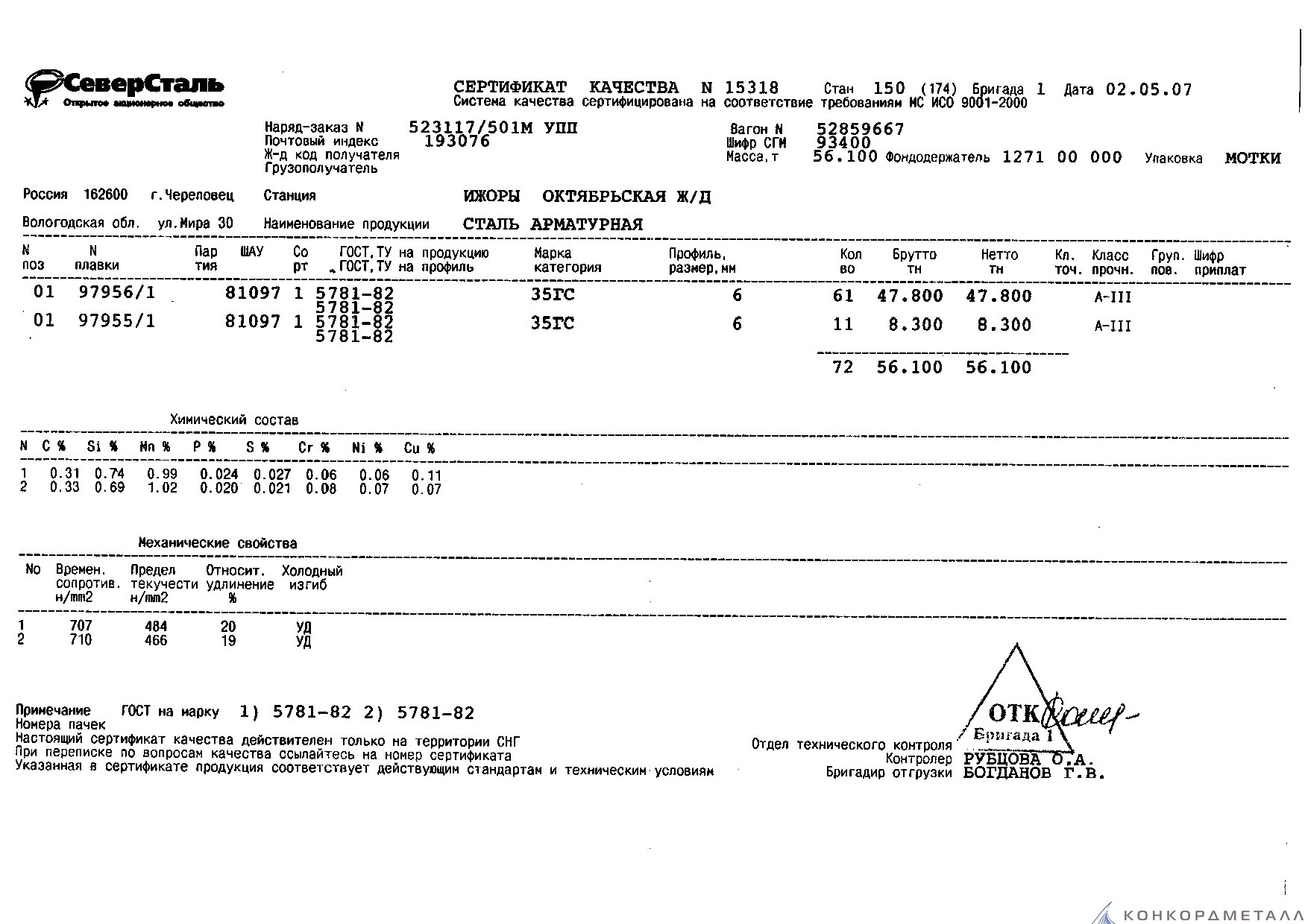 С каждой товарной позицией мы предоставляем все сертификаты и паспорта качества, а также товарно-транспортную накладную.