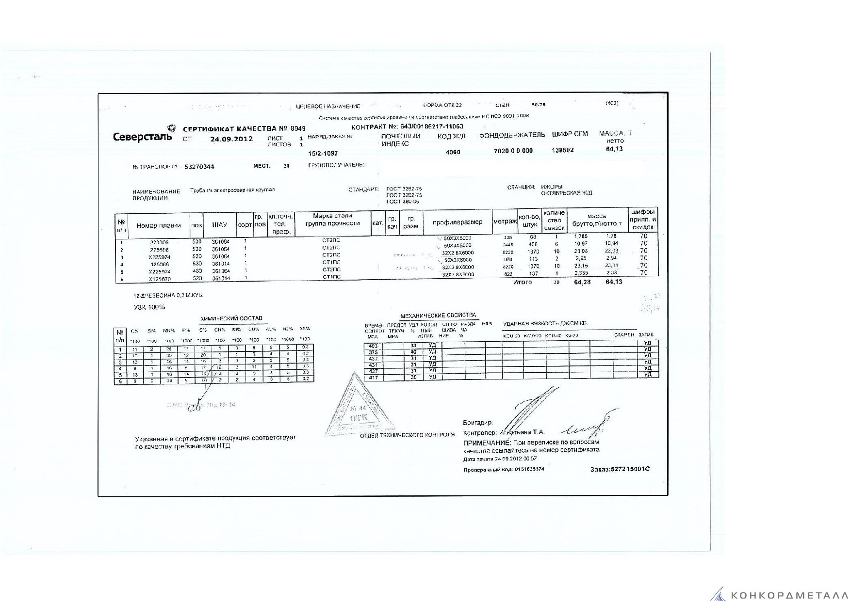 С каждой товарной позицией мы предоставляем все сертификаты и паспорта качества, а также товарно-транспортную накладную.