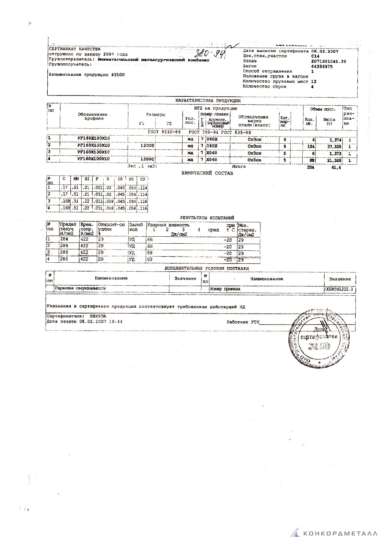 С каждой товарной позицией мы предоставляем все сертификаты и паспорта качества, а также товарно-транспортную накладную.